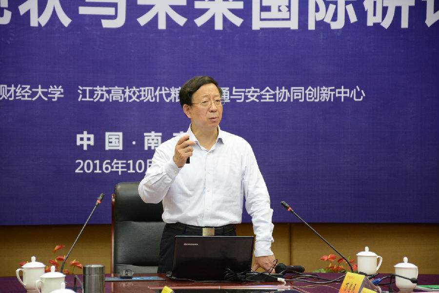 10月16日下午,由我校、江苏高校现代粮食流通与安全协同创新中心主办的粮食安全现状与未来国际研讨会在仙林校区工科楼二楼会议室召开,中国工程院院士、北京工商大学校长孙宝国,国家杰出青年科学基金获得者、教育部长江学者特聘教授、天津科技大学王硕教授,世界食品中心中国分中心主任、国家“千人计划”专家、美国加州大学戴维斯分校潘忠礼教授,加拿大曼尼托巴大学生物系统工程系主任张强教授,加拿大农业与农业食品部Paul Fields研究员,我校副校长鞠兴荣以及我校校友和师生参加了研讨会。会议由我校副校长邱伟芬主持。
