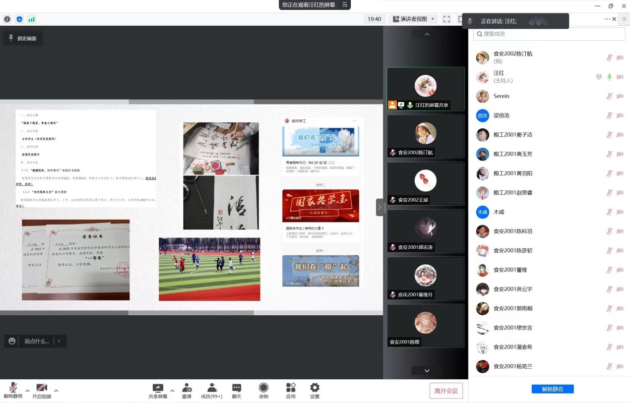 统一部署召开疫情防控“云”班会,全院四个本科生年级、24个班级实现了全覆盖,班会由年级辅导员主持。