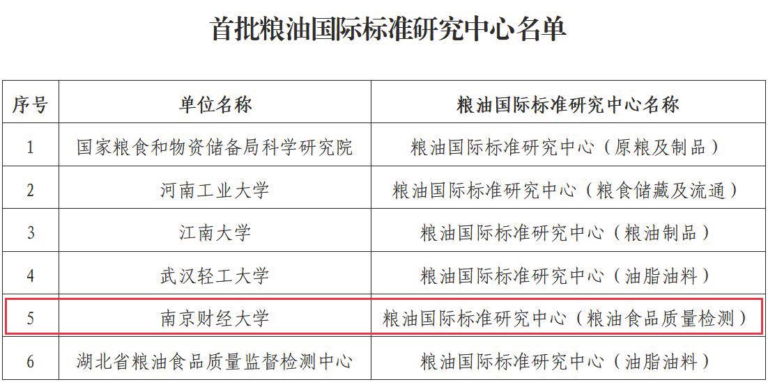 9月8日,国家粮食和物资储备局办公室公布首批粮油国际标准研究中心名单,我校成功获批粮油国际标准研究中心(粮油食品质量检测)。