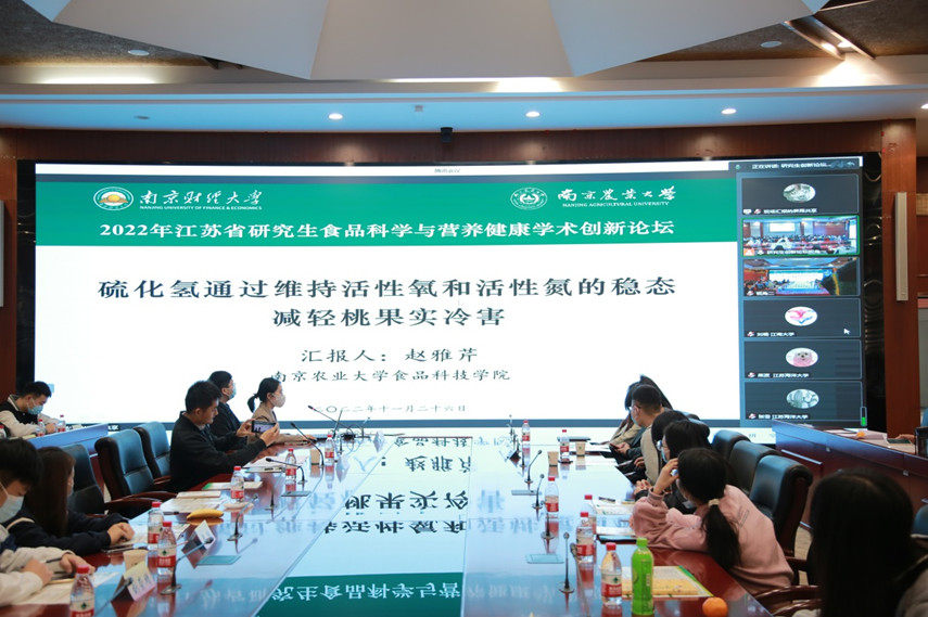 承办的2022年江苏省研究生“食品科学与营养健康”学术创新论坛在仙林校区食品科学与工程楼二楼会议室举行。校研究生院院长殷华方教授致开幕词并宣布论坛开幕,江苏省工学4类研究生教育指导委员会主任委员华祖林教授应邀致辞。论坛特邀讲座嘉宾、省内外10余所高校研究生优秀论文作者、学院相关领导、教师和全体研究生参加了本次论坛。本次论坛以线上线下相结合的方式进行。