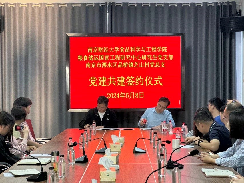 粮食储运国家工程研究中心研究生党支部与南京溧水区晶桥镇芝山村党总支建立长期共建机制,并在芝山村党群服务中心举行签约仪式。 芝山村党总支书记李其军与研究生党支部书记丁超签订党建共建协议书。支部书记丁超表示希望能够以本次党建活动为契机,依托芝山村丰富的农业资源和实践经验,让学生能够直接参与到乡村建设与发展中。