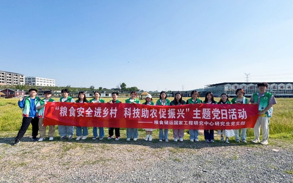 同日,粮食储运国家工程研究中心研究生党支部在芝山村开展了“粮食安全进乡村 科技助农促振兴”主题党日活动。支部同学们深入农户家中、田间地头宣传科学储粮、节粮减损知识,并结合自己的专业知识针对村民关心的粮食水分感官鉴定、粮食发热、生霉等日常储粮保管小知识,开展科普讲解。本次党日活动架起研究生党员与村民之间交流的桥梁,也让研究生走进乡村,服务乡村,为乡村振兴战略的实施提供人才支持和智力支撑。