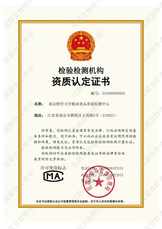 6月24日,我校粮油食品质量检测中心(以下简称检测中心)顺利通过江苏省市场监督管理局资质认定的综合评审,并取得检验检测机构资质认定证书。