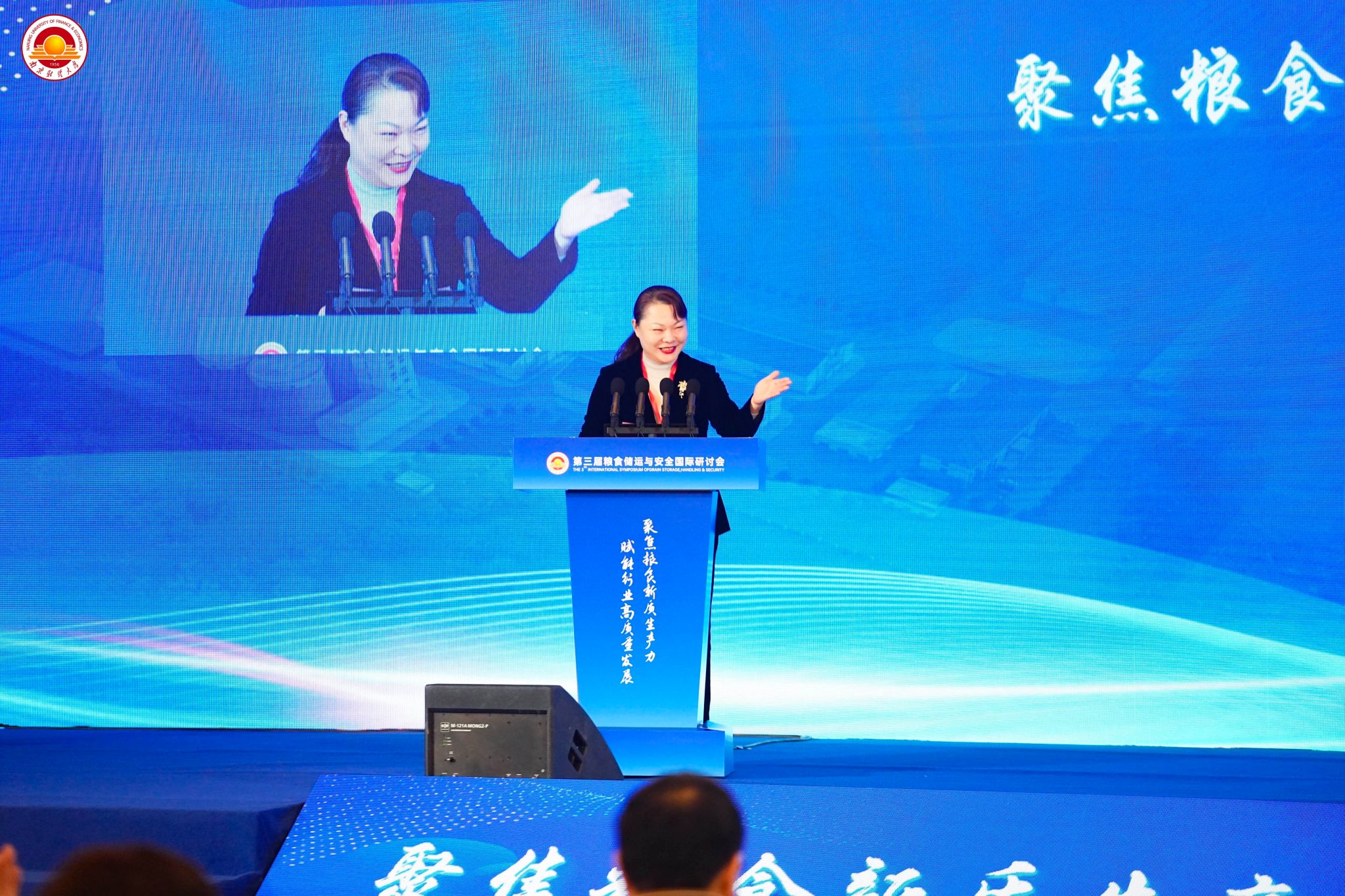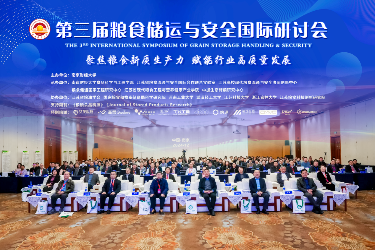 与江苏省粮食流通与安全国际联合实验室、江苏高校现代粮食流通与安全协同创新中心、粮食储运国家工程研究中心、江苏省现代粮食工程与营养健康产业学院、中加生态储粮研究中心等承办,江苏省粮油学会、国家粮食和物资储备局科学研究院、河南工业大学、武汉轻工大学、江苏科技大学、浙江农林大学、江苏粮食科技创新研究院等协办的第三届粮食储运与安全国际研讨会在南京举行。中国工程院院士、江南大学陈坚教授、金征宇教授,中国粮油学会理事长卢景波,原国家粮食局副局长吴子丹研究员,国际食品科学院院士、美国加州大学戴维斯分校Zhongli Pan教授,我校校长程永波,党委常委、副校长李煜出席会议。联合国世界粮食计划署、江苏省粮食和物资储备局、国家粮食和物资储备局江苏局、江苏省农业科学院、江苏省粮食集团有限责任公司、中储粮江苏分公司、中储粮江苏质检中心有限公司、江苏省江海粮油集团有限公司、江苏省粮油质量监测中心、江苏农垦米业集团有限责任公司、江苏省粮油学会等相关领导,我校科研处、国际合作与交流处、国产做爱视频