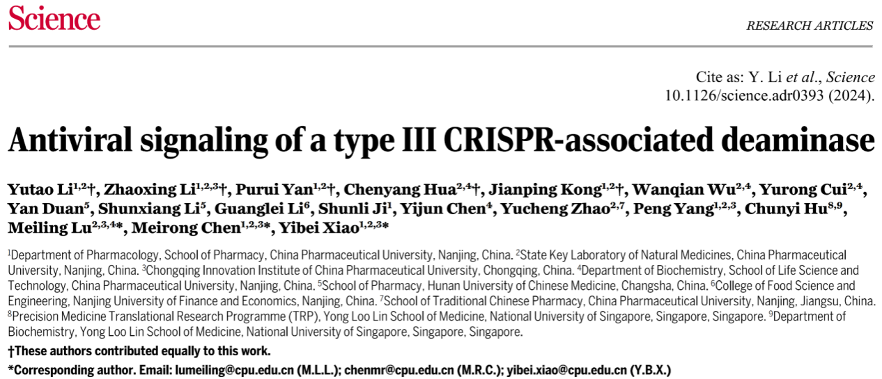 青年教师李光磊参与中国药科大学肖易倍教授团队牵头的CRISPR-Cas调控ATP消耗抗病毒机制研究,在国际顶级期刊Science上发表了题为Antiviral signaling of a type III CRISPR-associated deaminase的研究论文,国产做爱视频