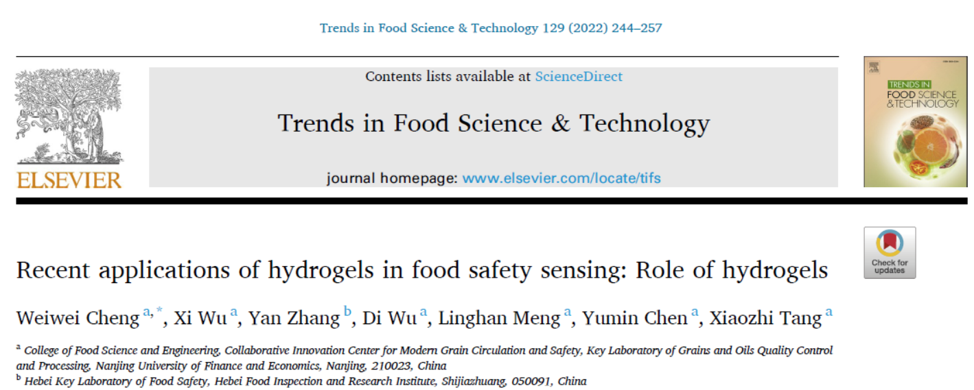 汤晓智汤晓智教授课题组与河北食品检验研究院张岩研究员联合在食品国际顶尖学术刊物《Trends in Food Science & Technology》(Q1,IF=16.002)发表题为 “Recent applications of hydrogels in food safety sensing: Role of hydrogels” 的综述论文。该论文以国产做爱视频