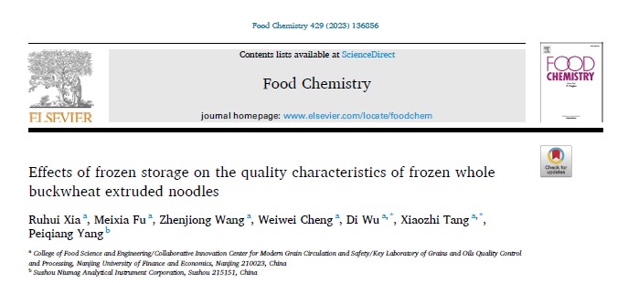汤晓智、吴迪(通讯作者)在国际TOP期刊Food Chemistry(Q1,IF: 8.8)发表题为“Effects of frozen storage on the quality characteristics of frozen whole buckwheat extruded noodles”的研究性论文。