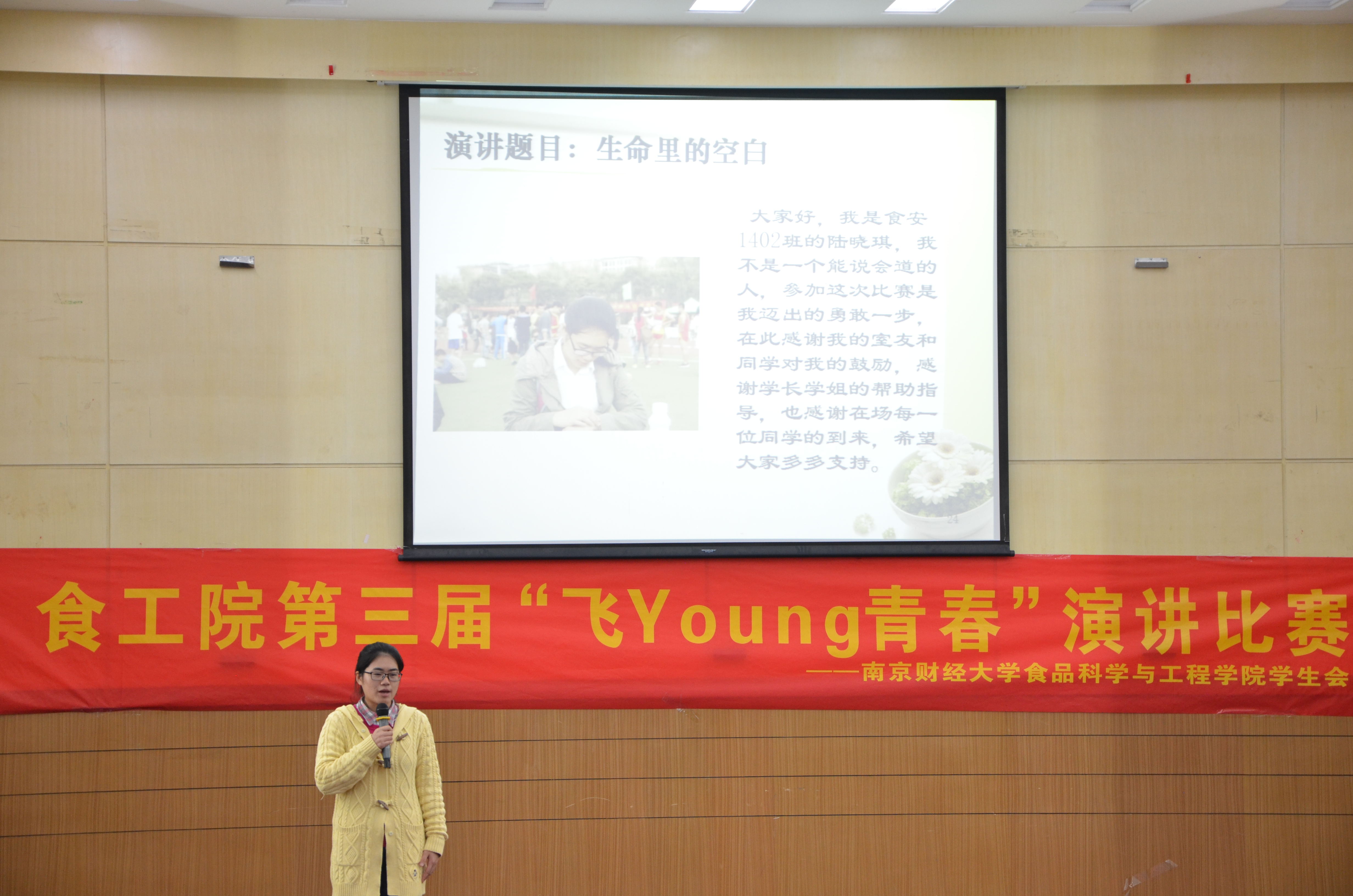 11月16日晚,法政学科楼报告厅内济济一堂,食工院第三届“飞young青春”演讲比赛决赛在这里隆重举办。院学生会主席张旭、副主席胡昊颖、团总支副书记吉燕燕、绿光通讯社社长栾銮、食工院辩论队领队危心瑶担任本次大赛评委。