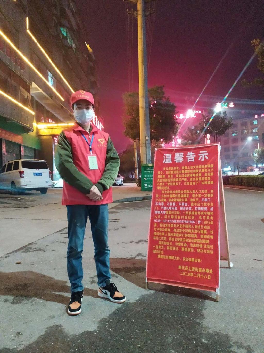2020年,新冠肺炎疫情初期,身处老家湖南省新化县的他在家自行隔离14天后果断报名参与抗击疫情志愿活动。被政府分配到街道办林业站的他,白天同工作人员穿行在街道各个市场、商店,检查是否有违规出售野生动物的情况。晚上值守在乡界,严查过往车辆内是否有发烧患者以及是否载有野生动物。在湖南,冬天的风是凛冽的也是刺骨的,但在许多人坚持不下去离开的同时,他没有半句怨言,勤勤恳恳坚持了23天。同时,对新化县这样一个刚刚脱贫的小县城而言,科技水平相对落后,人们对新冠疫情的危险程度缺乏认识。于是他便向当地政府建议编写一本《疫情防控手册》,并自荐参与编写,最终得到政府的批准。历经一周,手册编写完成后便在全县通过电子版与纸质版散发,收到了很好的效果。而对于志愿人员的口罩、额温枪极度缺乏这些问题而言,他更是伤透脑经,在询问国内各地同学、朋友得知当地物资同样却缺乏后,他毅然决定用自己通过奖学金、勤工俭学存下来的钱从国外高价购买了1000个口罩、10支额温枪,并全数捐献给当地政府用于抗击疫情。“那20多天里,累是肯定的,但能为国家、为人民群众贡献自己的一份绵薄之力,累并快乐着嘛。”回忆起抗击疫情时的情景他表示自己做的这一切都是值得的,是有意义的。
