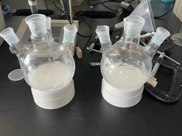 在胶黏剂制备过程中,团队运用了两项关键技术:纳米硅溶胶改性与淀粉接枝共聚。纳米硅溶胶的加入,不仅显著提高了胶黏剂的干燥速率和粘接强度,还赋予了其优异的耐水性和耐候性。而淀粉接枝共聚技术,则成功实现了木薯粉与醋酸乙烯酯等单体的高效结合,使胶黏剂的性能达到了一个新的高度。团队指导老师介绍称,“这一过程不仅实现了资源的有效利用,还大大降低了生产成本和对环境的影响。”