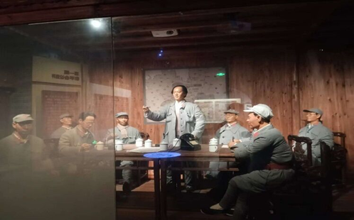 随着讲解的深入,我们来到了最后一个览厅。“1934年12月18日,中共中央在黎平县德凤镇二郎坡52号商铺召开了长征途中的第一次中共中央政治局会议,史称‘黎平会议’。”在讲解员的带领下,我们看到了许多描绘红军长征场景和人物形象的雕塑和绘画以及与长征或黎平会议相关的纪念币、邮票等,这些物品虽然是后来发行的,但也是对那段历史的纪念。
