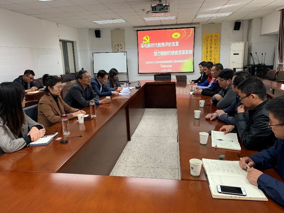 211会议室开展了以“深化新时代教育评价改革,助力新时代粮食改革发展”为题的专题党日活动,对中央《深化新时代教育评价改革总体方案》和教育部《关于规范高等学校SCI论文相关指标使用 树立正确评价导向的若干意见》进行了集中学习和讨论。