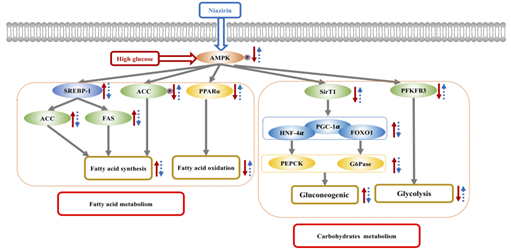 II 型糖尿病是一种以胰岛素抵抗为特征的长期代谢性疾病。大量研究表明,通过改善胰岛素抵抗和糖脂代谢异常能够缓解糖尿病。已有研究报道辣木对于糖尿病具有改善作用,而其中的活性成分尚待深入研究。本课题通过色谱技术从辣木中制备其特有的降糖活性物质,niazirin。在体外研究中,以IR-HepG2 细胞为胰岛素抵抗细胞模型,评价其体外降糖活性。在体内研究中,以 db/db 小鼠为糖尿病动物模型,探究 niazirin 对于 db/db 小鼠胰岛素抵抗、糖脂代谢异常的改善作用机制。结果表明,niazirin能够降低db/db 小鼠血糖血脂水平,并且能够通过调节AMPK信号通路改善db/db 小鼠的糖脂代谢。该研究为辣木的资源高值化利用提供科学依据。