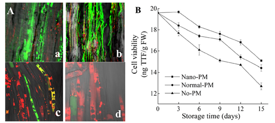 杨文建教授团队前期研究发现,纳米复合包装材料可以通过调控金针菇采后呼吸和能量代谢有效抑制金针菇的采后衰老。近期,该团队进一步证明纳米复合包装可以延缓Apyrase活性的下降,刺激氧化磷酸化相关基因的表达,抑制与延缓衰老相关的关键信号分子eATP含量的增加,从而减缓细胞程序性死亡(PCD)进程,最终较好地维持采后金针菇的品质。该研究成果进一步完善了纳米复合包装的保鲜机制,同时也为解决金针菇采后品质劣变提供了思路。