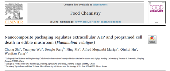 杨文建教授课题组题为“Nanocomposite packaging regulates extracellular ATP and programed cell death in edible mushroom (Flammulina velutipes)”的研究论文。该研究得到了国家自然科学基金(31871853)、江苏省优秀青年基金(BK20180092)以及江苏省教育厅重大项目(18KJA550002)的资助。