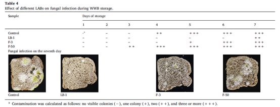 全麦面包是指用没有去掉外面麸皮和麦胚的全麦面粉制作的面包。与白面包相比,全麦面包含有丰富的膳食纤维、矿物质,植物素、抗氧化剂和维生素。据美国癌症研究协会和世界癌症研究基金会报道,每天适当摄入全谷物食品有利于降低胆固醇和结肠癌风险。如今,全世界的消费者对全谷物食品展现出极大的兴趣。然而,由于大多数真菌存在于小麦外表面的麸皮当中,全麦面包极易受真菌感染。这些真菌在生产过程中会作为潜在的污染源并产生包括黄曲霉毒素、玉米赤霉烯酮、脱氧雪腐镰刀菌烯醇等真菌毒素,对食品造成巨大的安全隐患。此外,全麦面包麸皮中含有一些苦味成分,使全麦面包的可接受度远低于白面包。乳酸菌作为一种纯天然无害的益生菌,在通过发酵面团改善面包风味及延长面包保质期方面有着广阔的市场及应用前景。
