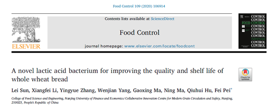 裴斐副教授课题组利用新型植物乳杆菌LB-1与酵母菌协同发酵技术开发新型全麦面包产品,显著改善了全麦面包质构、风味及贮藏特性。相关结果以“A novel lactic acid bacterium for improving the quality and shelf life of whole wheat bread.”为题发表在Food Control杂志上。国产做爱视频