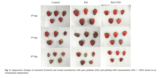 草莓果实营养丰富,拥有“水果皇后”的称号。然而,草莓成熟后表皮极薄,在采摘和储存过程中极易受到机械损伤与细菌霉菌侵染,通常情况下在常温放置3天即失水霉烂严重,失去商业价值。因此,如何维持新鲜草莓的品质,延长草莓的储藏时间一直以来都是国内外研究人员的热点问题。涂膜保鲜法因为具有操作简单易行、良好的气体选择透过性和有效防止微生物侵入等优势,成为近年来果蔬采后保鲜领域的热点研究方向。本研究以天然高分子可降解材料普鲁兰多糖为成膜基材,添加肉桂精油纳米乳液以提升复合膜的抗菌性能。对新鲜草莓涂抹保鲜的应用研究发现, 经过肉桂精油纳米乳液/普鲁兰多糖基复合膜液涂膜后的草莓,其在贮藏期结束时的重量损失、腐败率、硬度、可溶性固形物、可滴定酸和微生物指标均显著好于纯普鲁兰膜液组和对照组的草莓。实验结果表明草莓果实经过肉桂精油纳米乳液/普鲁兰多糖基复合膜液涂膜处理后,可以有效地延长贮存期,延缓衰老,并保持良好的外观品质,可见使用肉桂精油纳米乳液/普鲁兰多糖基复合膜液涂膜是一种极具潜力的保鲜手段。相关研究结果以“Improvement of storage quality of strawberries by pullulan coatings incorporated with cinnamon essential oil nanoemulsion”为题发表在LWT杂志上,国产做爱视频