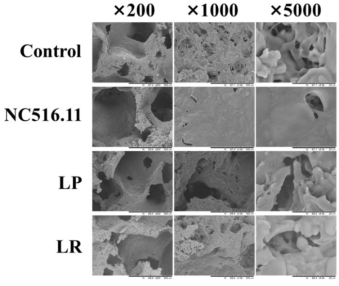 图2 不同乳酸菌发酵酸面团的结构特征