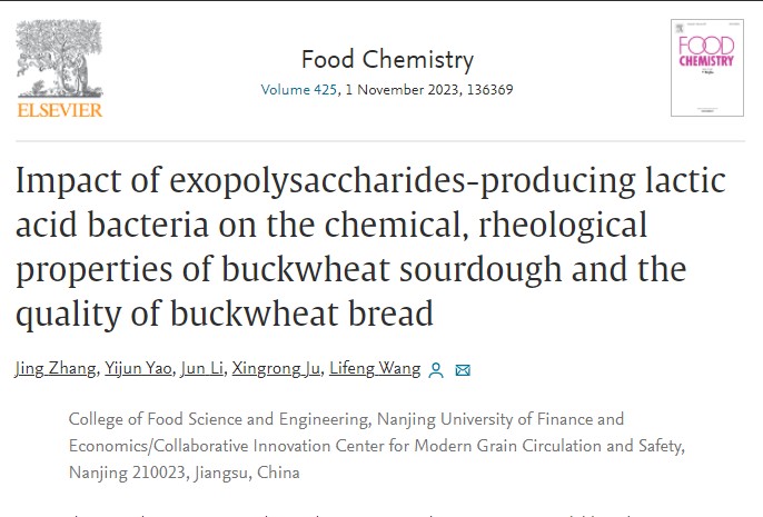 张晶、王立峰(通讯作者)在国际TOP期刊Food Chemistry (Q1,IF: 8.8)发表题为“Impact of exopolysaccharides-producing lactic acid bacteria on the chemical, rheological properties of buckwheat sourdough and the quality of buckwheat bread”的研究性论文。